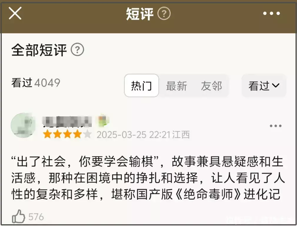哪怕是四星好评,都有人提到《棋士》是国产版《绝命毒师》。